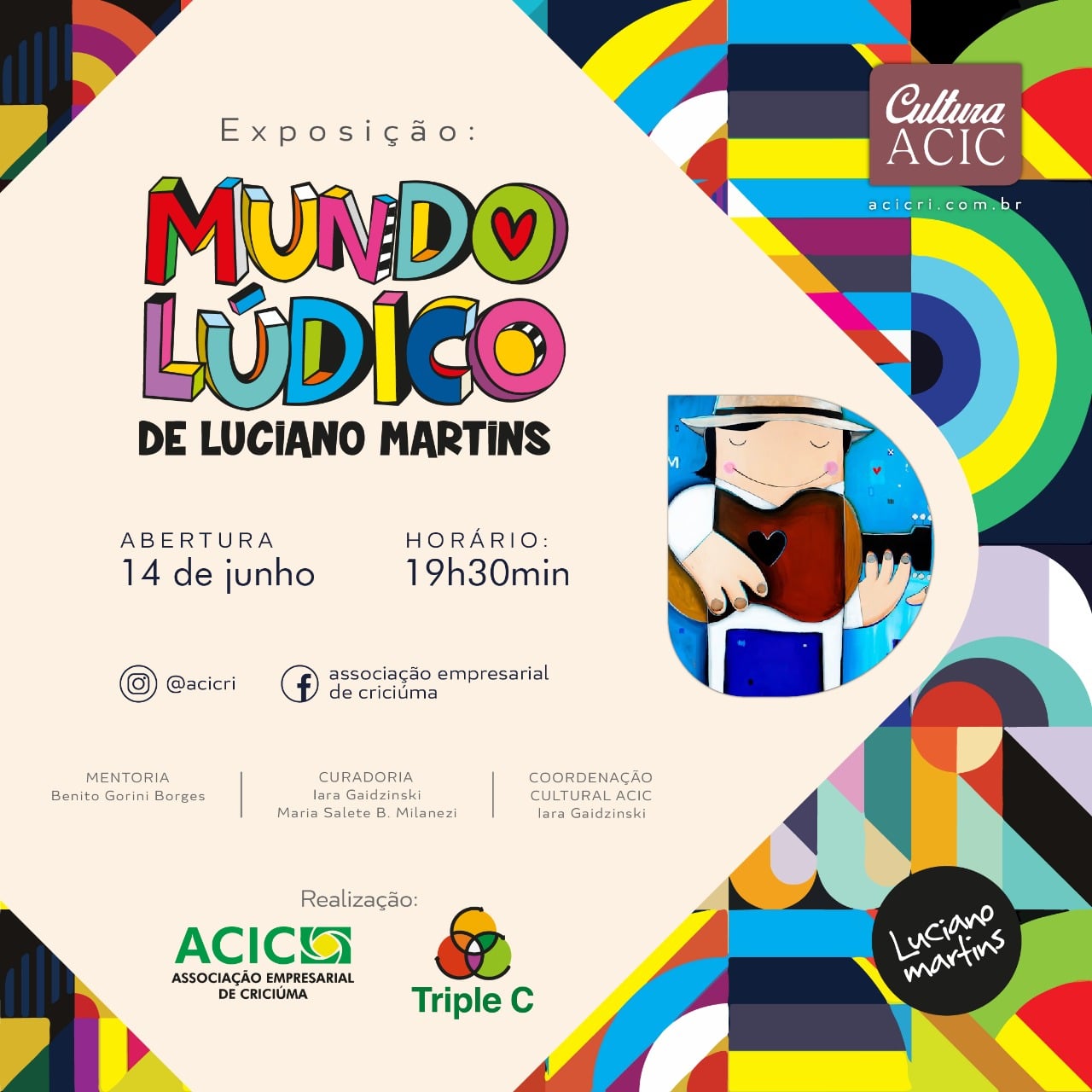 Luciano Martins foi convidado pela Associação Empresarial de Criciúma (ACICRI) para expor suas obras na galeria de arte da associação empresarial . A exposição “Mundo Lúdico” foi inaugurada dia 14 de junho e ficará aberta ao publico até 30 de agosto.